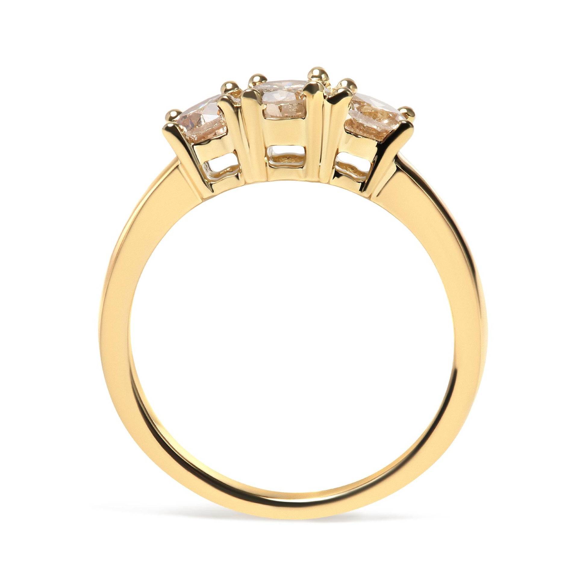 10K Yellow Gold 1.00 Cttw Champagne Diamond 3-Stone Band Ring (J-K